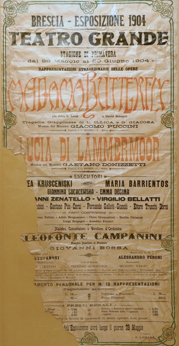 Il Teatro Grande ospitò infatti una versione riveduta e corretta della tragedia pucciniana nel corso della Stagione Lirica del 1904, anno in cui la città ospitava l’Esposizione di Brescia nell’area del Castello, decretando il trionfo di questo capolavoro.